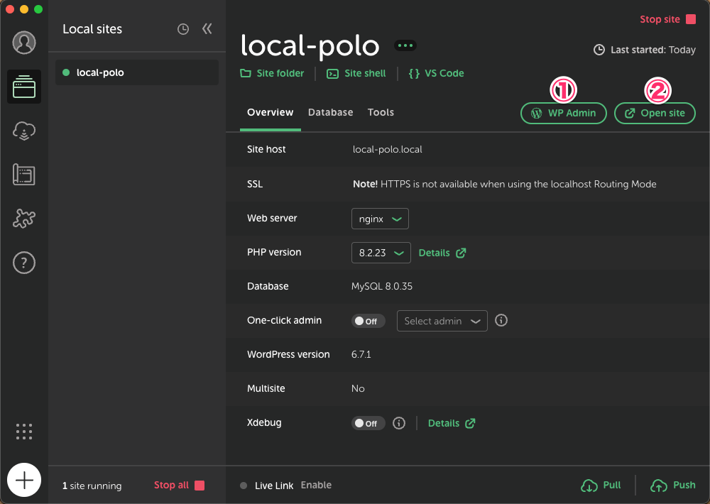 Localの場合、WordPressのインストールが簡単で、複数のWordPressをローカル環境を作成できるようだ。